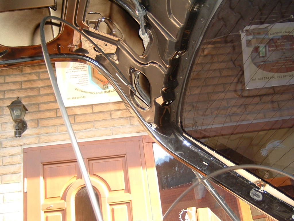 Nejprve je potřeba si oddělat plasty interiéru z 5. dveří nejprve sejmeme spodní interiérový kryt, který drží na příchytkách 4 ks, ale nejdříve je nutné sundat madlo na zavírání 1x torx, dále vyjmout lem kolem okna, drží na 6 ks příchytek, plus je potřeba vyšroubovat dva držáky na kryt zavazadelníku – plato a dva šrouby ve spodní části lemu, lem pak vycvakneme. Odcvakneme horní zadní lem u stropu, drží na 7 příchytkách, pak odstraníme L výplň odšroubováním držáku na tašky a jedním šroubem v prostoru u zadního světla (je na něm věšáček), tahem vyndáme.