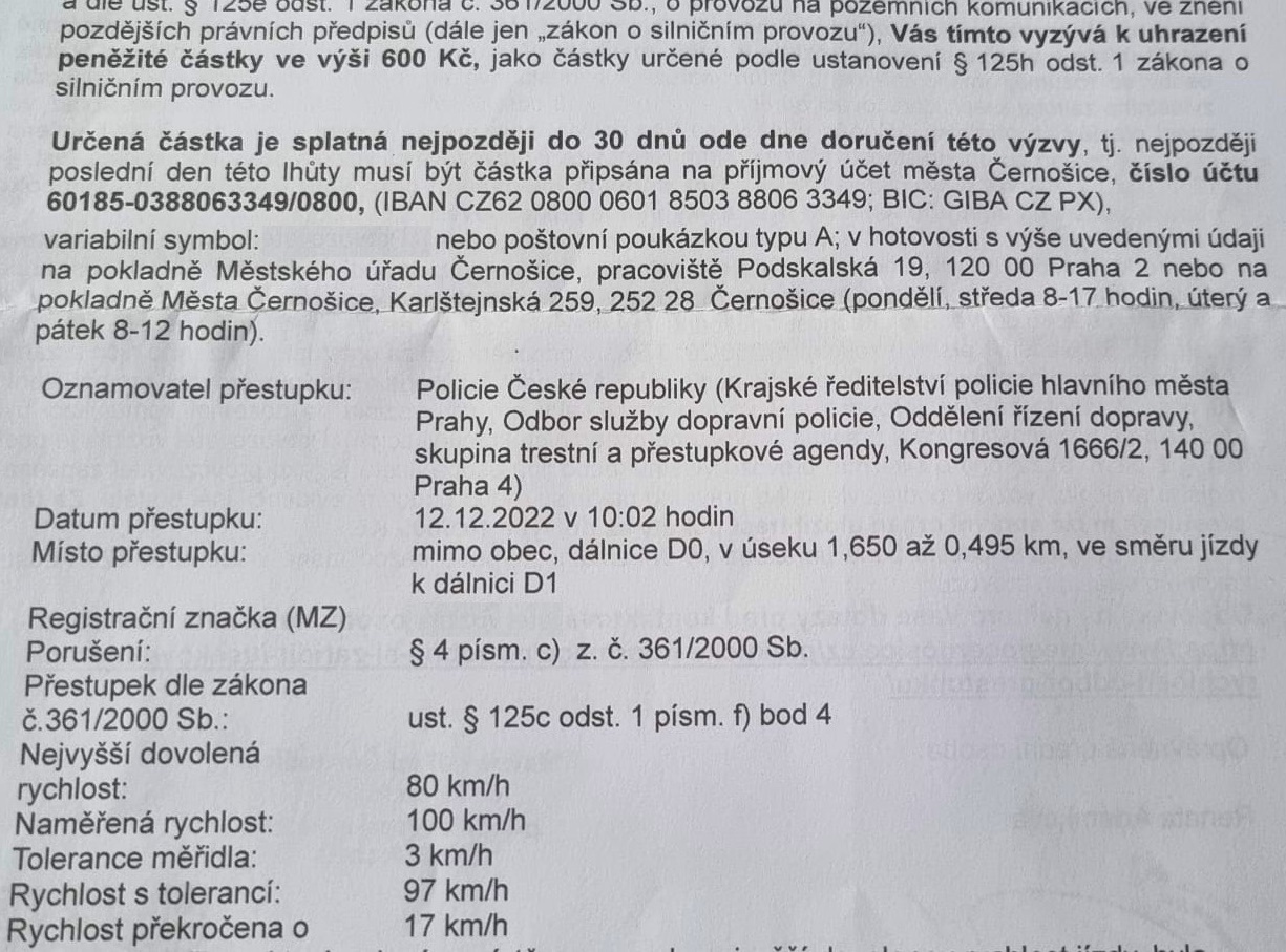 Aktuálně platí, že pokud Vám jako provozovateli vozu například přijde pokuta za překročení rychlosti z úsekového měření nebo stacionárního radaru můžete: